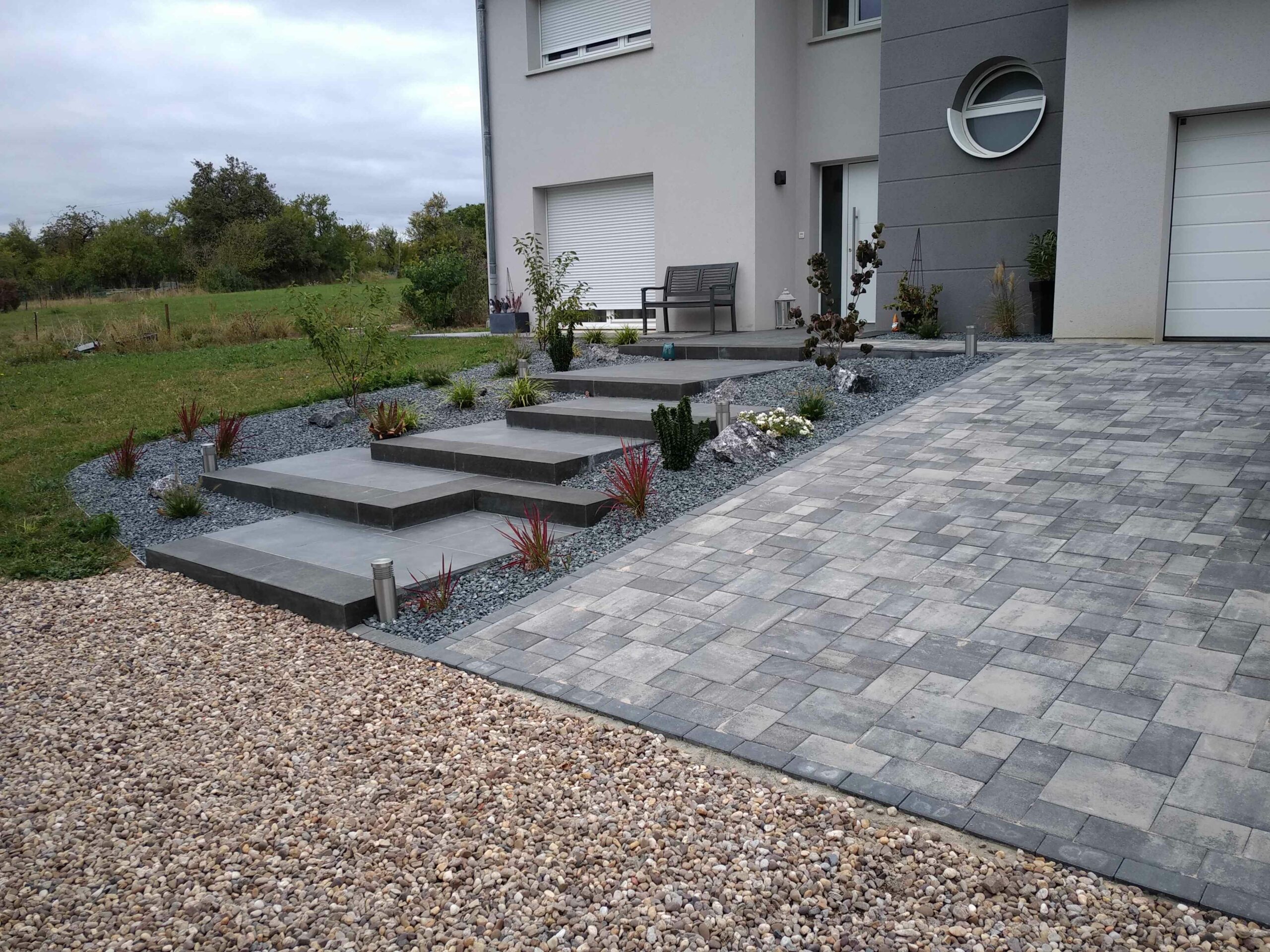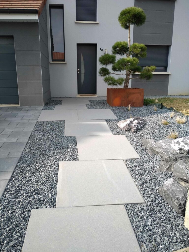 Le pavage et le dallage constituent l’ossature de vos aménagements extérieurs, alliant fonctionnalité et esthétisme. Nos équipes spécialisées maîtrisent toutes les techniques traditionnelles et contemporaines de pose pour créer des surfaces durables et élégantes qui structurent harmonieusement vos espaces. Nous réalisons des allées carrossables et piétonnes, cours et aires de stationnement ainsi que des bordures et séparateurs décoratifs. Notre gamme inclut pavés en béton et pierre naturelle, dalles grand format et graviers décoratifs stabilisés. Chaque projet nécessite une préparation minutieuse : décaissement, pose de géotextiles, création de fondations drainantes et mise à niveau parfaite. Nos équipes respectent les pentes d’évacuation et intègrent des systèmes de récupération d’eaux pluviales. La finition se distingue par la précision des joints et l’intégration harmonieuse.